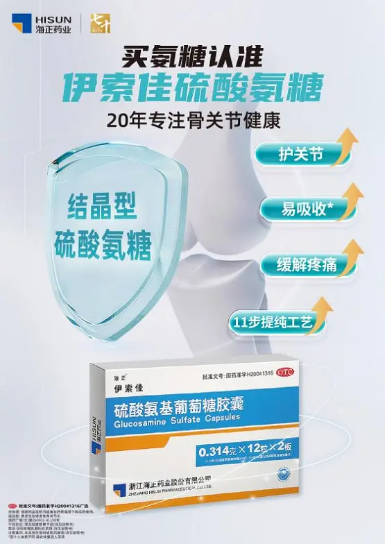 海正伊索佳的背后,是海正药业多年深耕制药行业的研发积淀与生产硬实力。作为中国领先的原料药生产企业,海正药业的氨糖原料药已成功出海,获得国际市场的广泛认可。海正伊索佳于2015年纳入医保目录,得到了临床医生和消费者的广泛认可,累计服务数千万关节不适人群,成为大众关节养护的“信赖之选”。